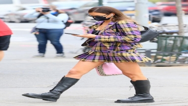 تستمر عارضة الأزياء إيرينا شايكي البالغة من العمر 35 عامًا بأسلوب نيويورك في هز شوارعها بأقصى سرعة. لم يتجاهل Shayk اتباع قواعد الوباء، وذلك بمطابقته بين سترة وتنورة من تصميم Vivienne Westwood وحذاء يصل إلى الركبة.