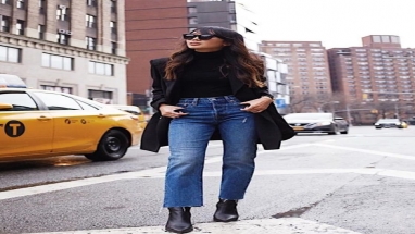ماذا أرتدي: توقف عن “لدي محيط كبير”، فأنت لست حاكمًا فبدلاً من ذلك ركز على جمالك مع الجينز الضيق عالي الخصر الذي يبرز منحنياتك وخصرك النحيف.